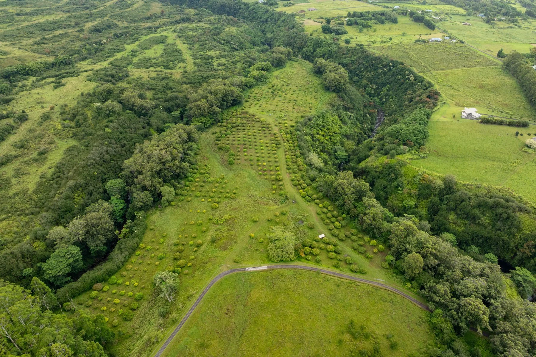 Kupaianaha Ranch spanning nearly 800 acres is located on the Hamakua Coast of Hawai‘i Island situated within the historic ahupua‘a of Hakalau. View the property location here.